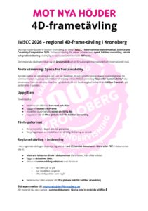 IMSCC 2026 är en kreativ 4D-frame-tävling för årskurs 4–8 där elever utforskar hur rymd, AI och forskning kan bidra till en hållbar framtid. I lag om två bygger eleverna modeller med rörliga delar och kopplar sina idéer till FN:s globala mål.